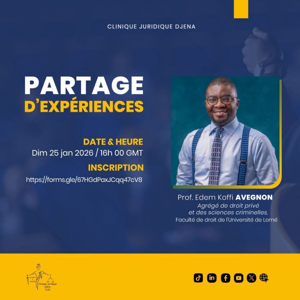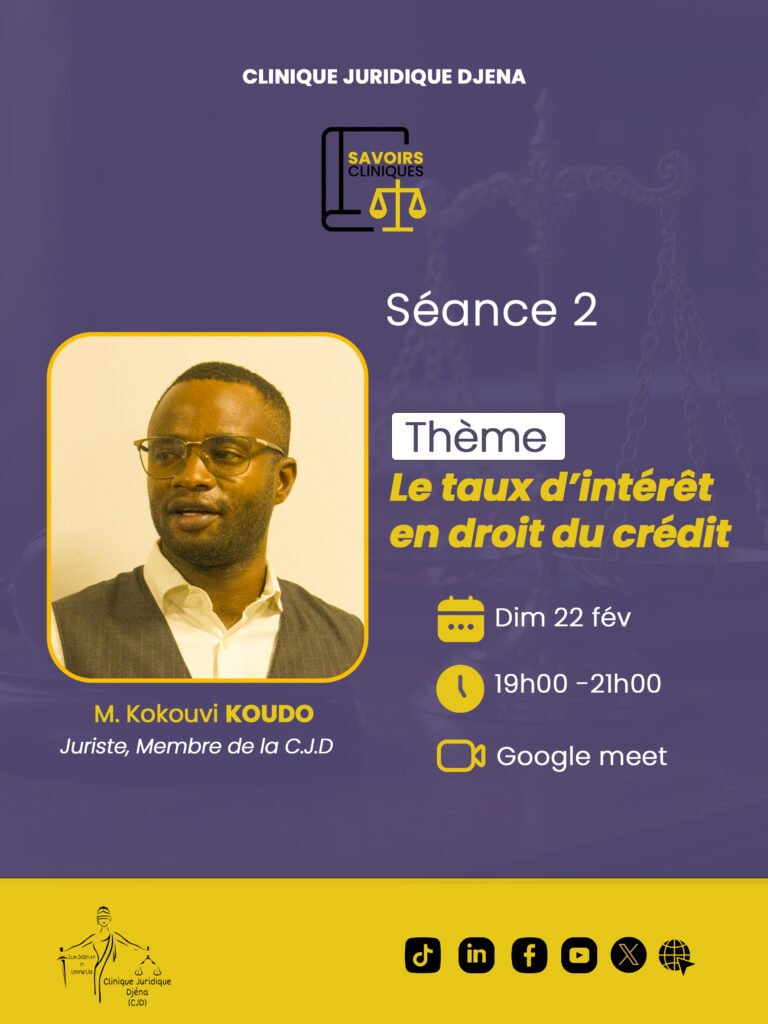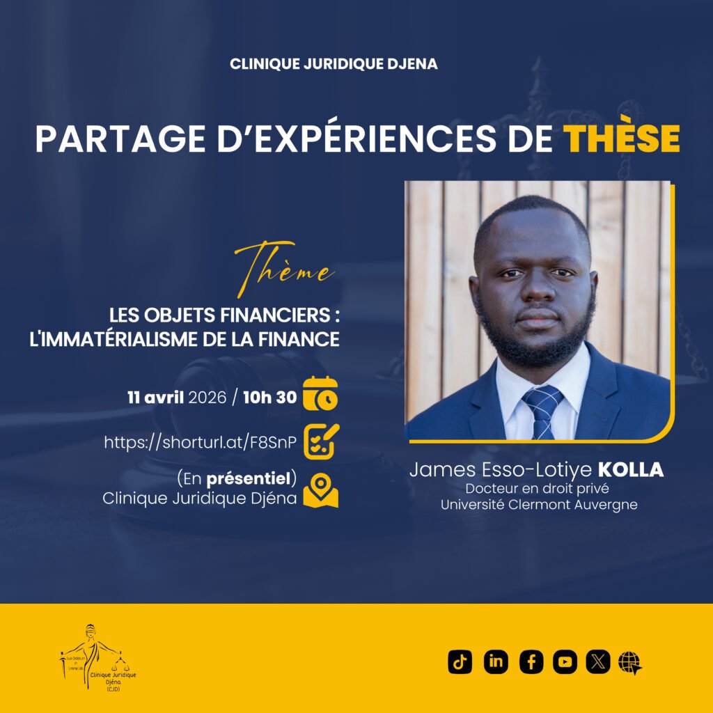 Évènements Calendrier des évènements de la clinique Évènements à venir Atelier PARTAGE D’EXPERIENCES DE THESE / Les objets financiers : l’immatérialisme de la finance S'inscrire Conférence Séances d’informations / CERTIFICAT EN DROIT FONCIER ET FISCALITE FONCIERE S'inscrire Webinaire Savoirs Cliniques / Séance n°3/ Le résultat pénal S'inscrire Webinaire Savoirs Cliniques / Séance n°2 / Le taux d’intérêt en droit du crédit S'inscrire Webinaire PARTAGE D’EXPERIENCES DE THESE / La protection sociale comme un droit fondamental au Togo S'inscrire Webinaire PARTAGE D’EXPERIENCES S'inscrire Webinaire Savoirs Cliniques / Séance n°1 / La responsabilité punitive S'inscrire Atelier MATCH AMICAL S'inscrire Revivez tous nos webinaires en Replay Replays